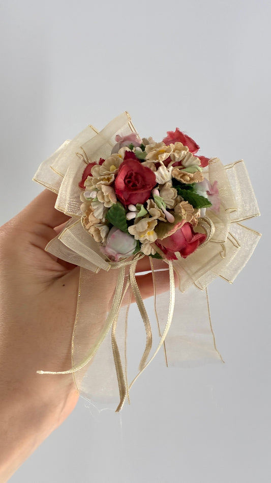 Vintage Lace Fabric Florals Bow Pin Brooch