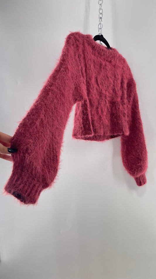Urban Outfitters Mauve Pink Fuzzy Cropped Sweater with Bubble Sleeves (XS)
