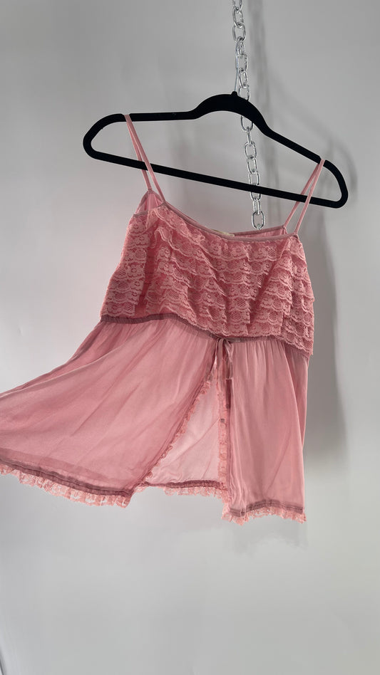 Andrew & Co NYC Deadstock Vintage Ruffled Lace Pink Tank with Bow Detail and Vented Bodice (S/M)