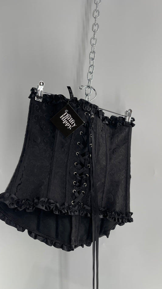 Adore Me Black Brocade Lace Back Ruffle Ribbon Trim (S/M)