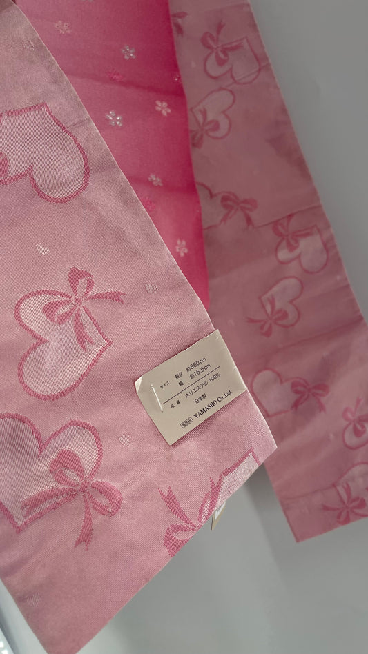 Deadstock Vintage Japanese Pink Heart and Bow Patterned Obi Belt