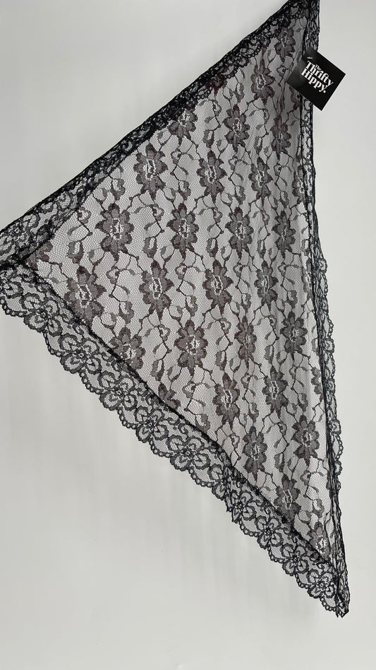 Vintage Black Brown Triangle Lace Bandana Hair/Headscarf