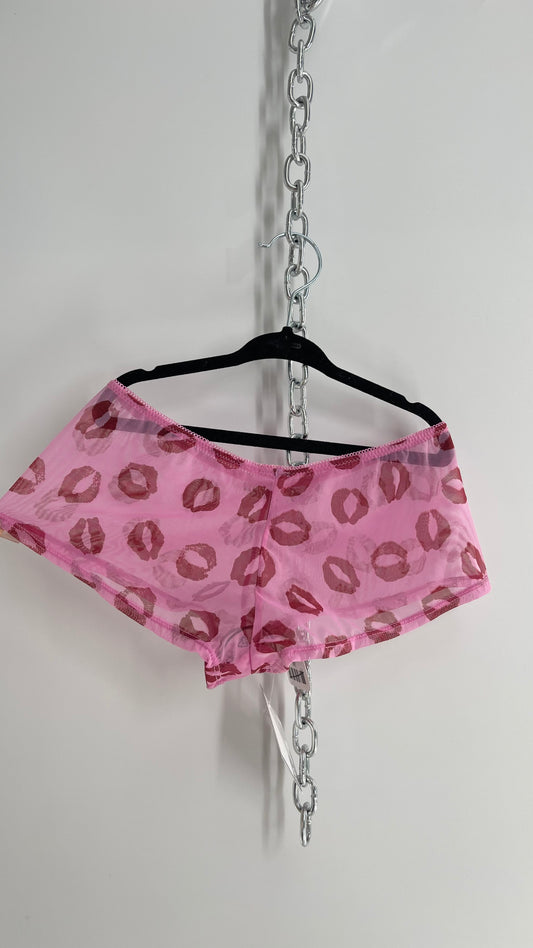Urban Outfitters Pink Mesh Kiss Graphic Cheeky Panty with Tags Attached (Small)
