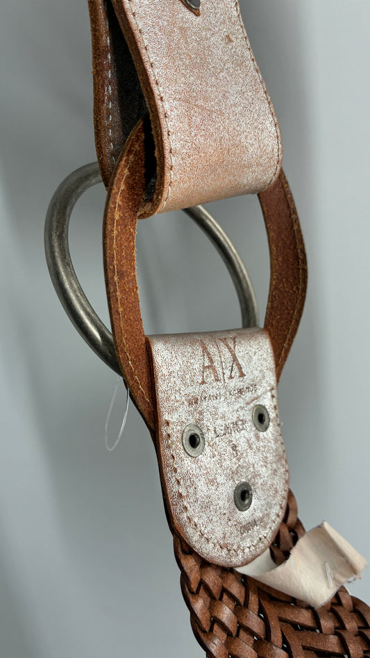 Vintage ARMANI Metallic Silver Thick Braided Leather Belt with Oversized Metal Loop Buckle (Small)