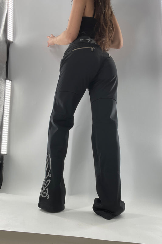 Vintage Athleta Flare 100% Nylon Thick Stretchy Black Pants with Side Clasps, Low Rise, Graphic on Back and Side of Leg (4)Precio habitual $48.98Precio habitualPrecio unitario por$110.00Precio de oferta $48.98Oferta