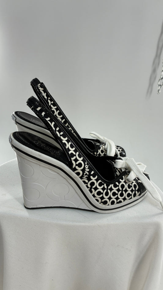 Vintage COACH Emilanna Black and White Monogram Wedge Sneaker Heel (7B)