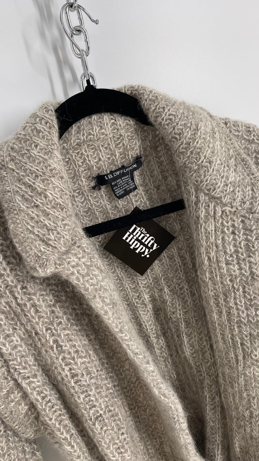 Vintage I.B. Diffusion Grey 85% Wool Mohair Heavy Knit Balloon Sleeve Jacket (Medium)