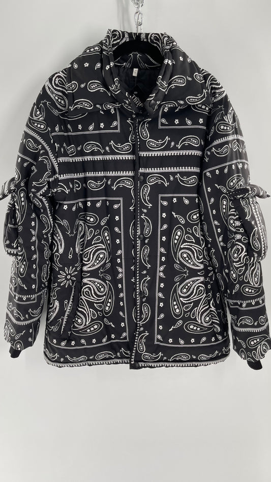 Bandana Patterned Black/White Puffer Jacket (C)(3XL)