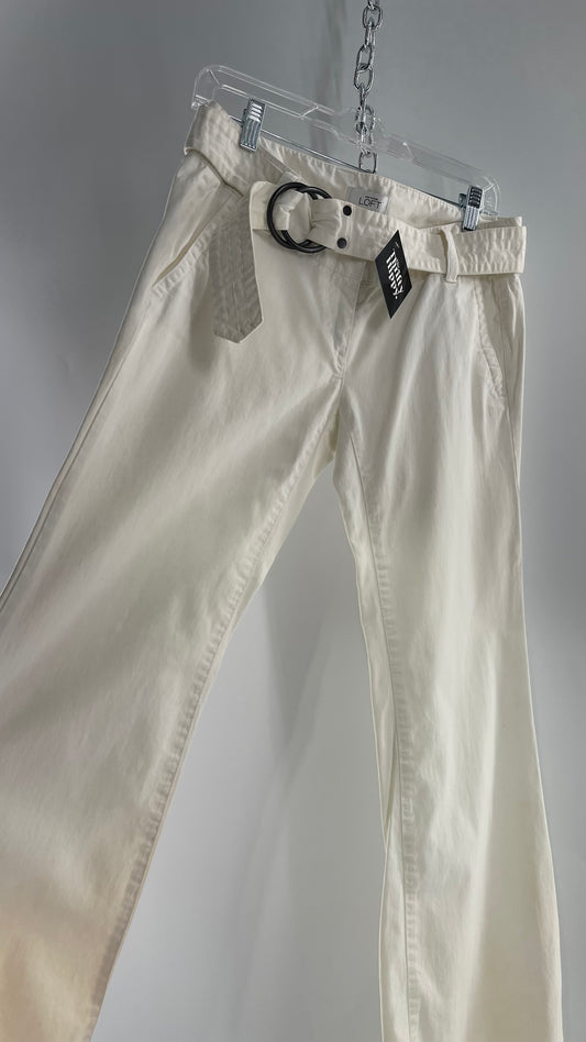 Ann Taylor 90s White Kick Flare Low Waist with Buckle Waistline (2)