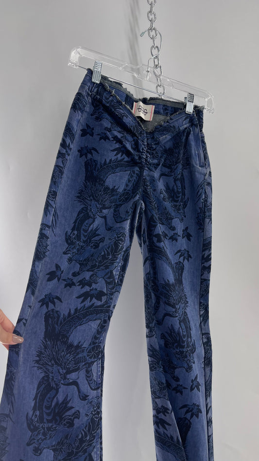 BDG Urban Outfitters Blue Kick Flare Scrunch Waist Jeans with Dragon Pattern (25)