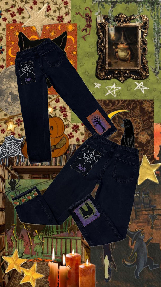 Hand Made Festive Halloween Patchwork Mom Jeans (26)