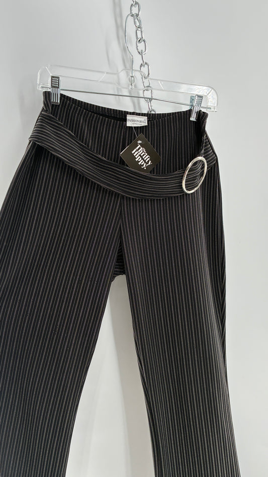 Vintage FASHION BUG Low Rise Black Striped Kick Flares with Silver Buckle Belt 1990s (6)