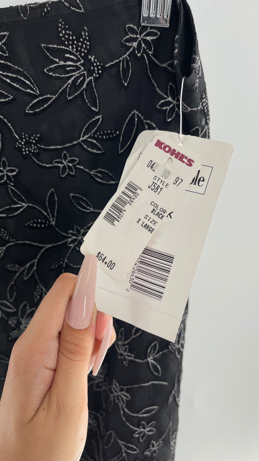Deadstock Vintage Ronni Nicole 1990 Black Capri with Mesh Silver Floral Details and Tags Attached (XL)