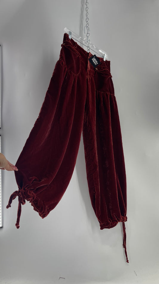 Free People Lotus Red/Orange Low Waist Velvet Pants Haram/Gypsy Pants (26)