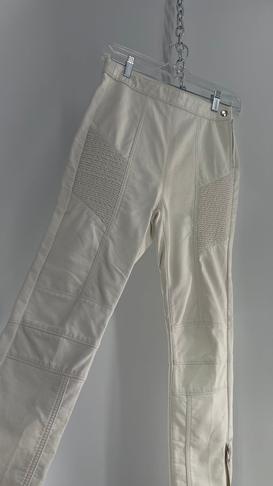 Free People Off White Vegan Leather Zipper Ankle, Pleated Panels Moto Pant (2)