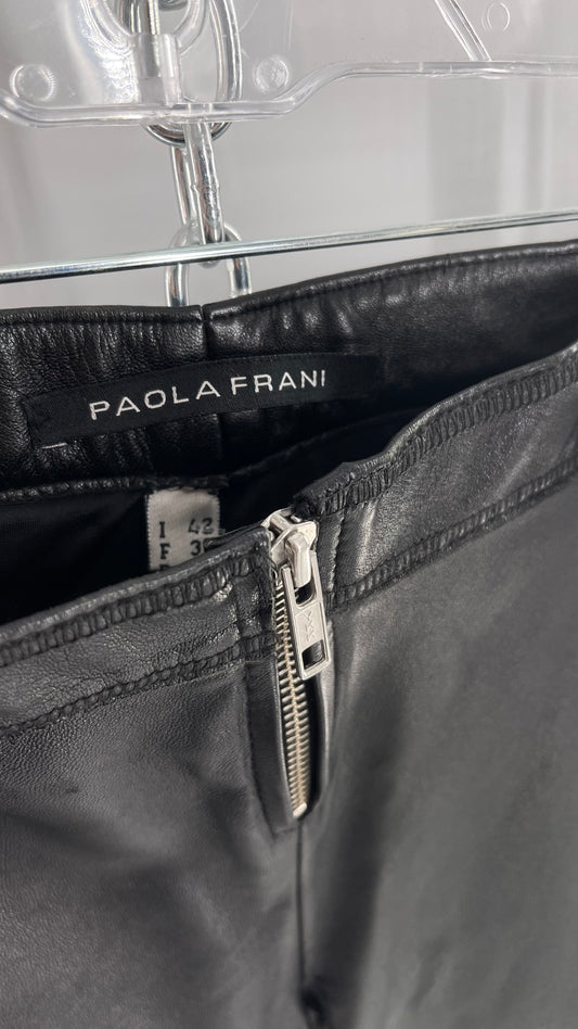PAOLA FRANI 1990s Black Genuine Leather Low Waisted, Zip Front, Patched Bum and Knee Pants (8)