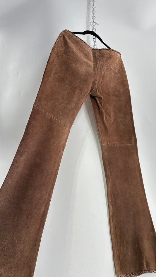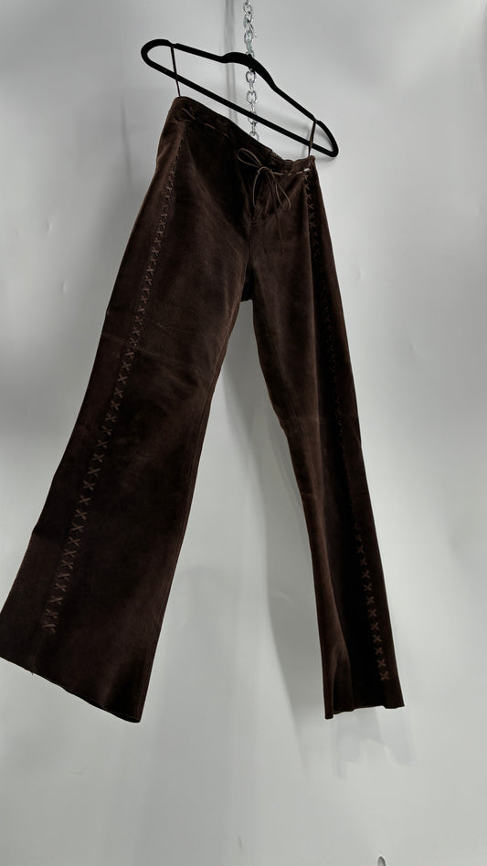 Vintage FOR JOSEPH Low Rise, Chocolate Brown Suede Pants with Leather Stitch Sides and Bow Closure (28)Precio habitual $98.00Precio habitualPrecio unitario por$149.00Precio de oferta $98.00Oferta