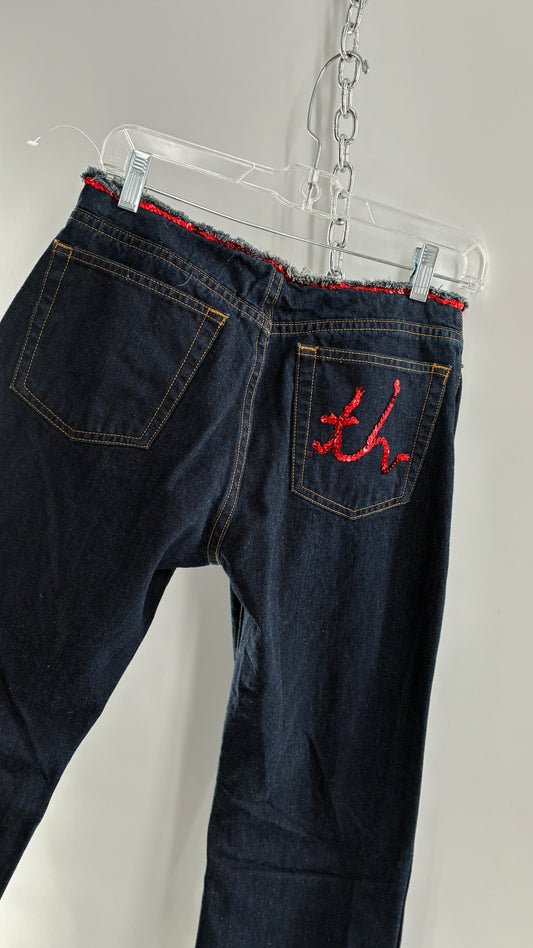 Vintage Tommy Hilfiger Low Rise Jeans with Frayed Waist Lined in Red Sequins (7)Precio habitual $50.00Precio habitualPrecio unitario por$110.00Precio de oferta $50.00Oferta