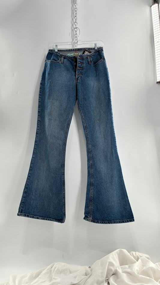 Vintage 1980s MUDD Flared Button Front Jeans with Colorful Jacron (9)Precio habitual $58.00Precio habitualPrecio unitario por$99.00Precio de oferta $58.00Oferta
