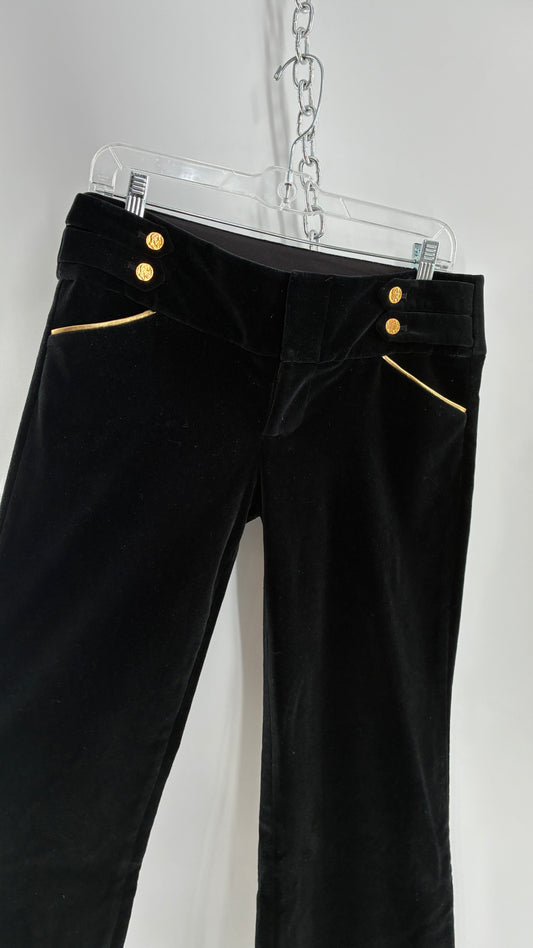 Vintage Alice + Olivia Thick Black Velour Low Rise Kickflare Pants with Thick Waistband with Gold Coin Detailing (6)Precio habitual $42.00Precio habitualPrecio unitario por$159.00Precio de oferta $42.00Oferta