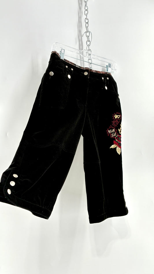 Vintage Black Corduroy Capris with Full Thigh Embroidery, Silver Buttons, and Woven Plaid Waistline (30)Precio habitual $36.00Precio habitualPrecio unitario por$69.00Precio de oferta $36.00Oferta