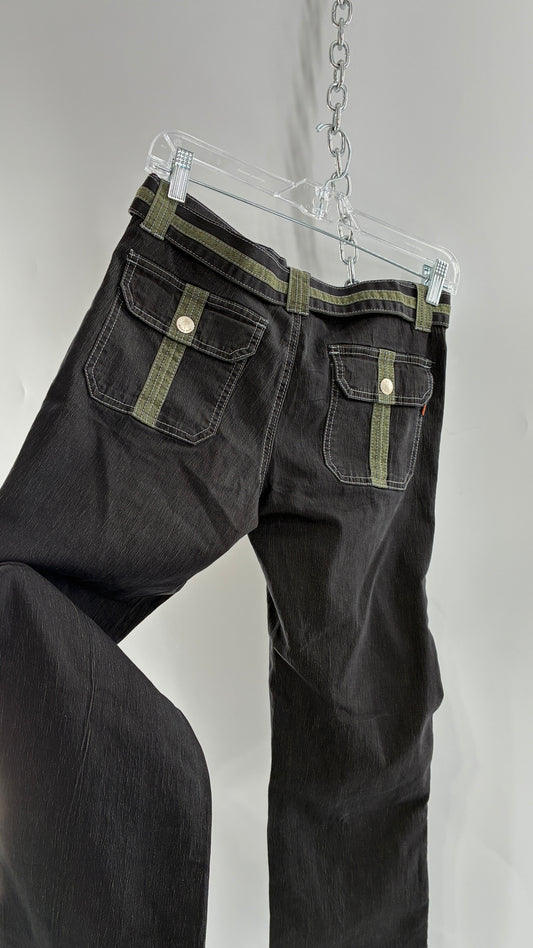 Deadstock Vintage MOKACHINO Grey Low Rise Kick Flares with Zipper Belt and Hip Pockets (18X)Precio habitual $48.00Precio habitualPrecio unitario por$70.00Precio de oferta $48.00Oferta