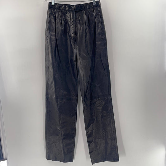 West Bay Vintage 100% Leather High Waist Black Pants (Size 10)