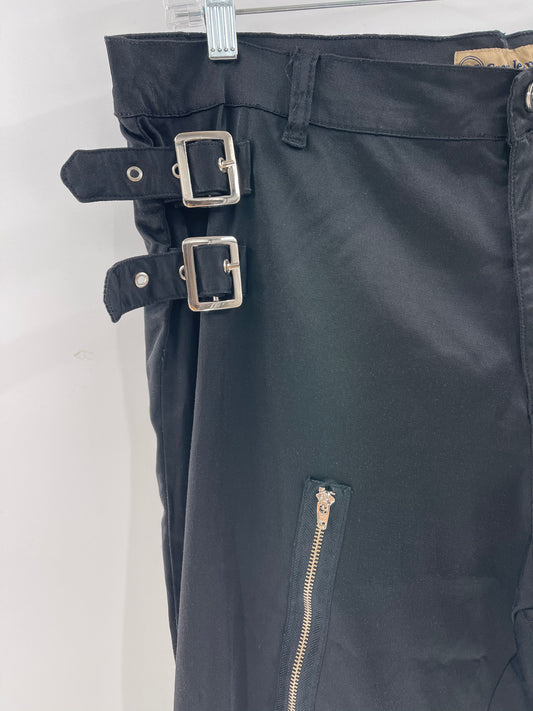 Black Vintage Buckle + Zip Pocket Pants “Crest Jeans” (Size 19/20)