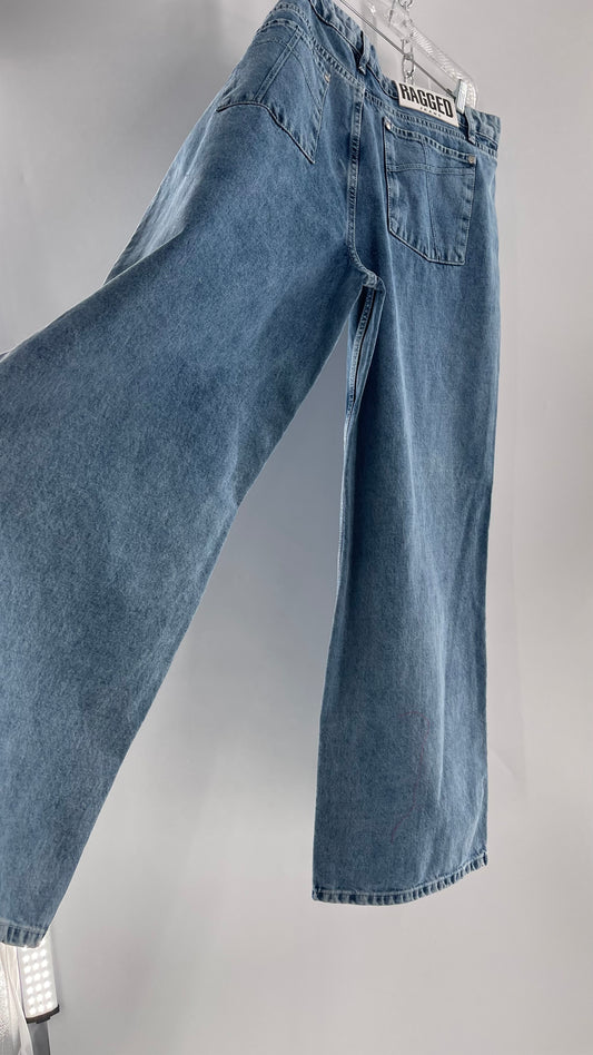 BDG Smiley Face Embroidered Baggy Wide Leg Medium Wash Jeans (Small)