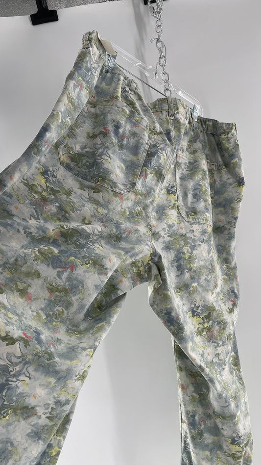 Pilcro Anthropologie Lilly Pad Pond Painted Water Color Cargos (26W)
