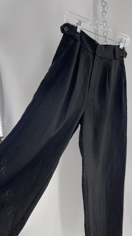 Thrills Black Thick Linen Trouser with Side Buttons and Pleating (4)