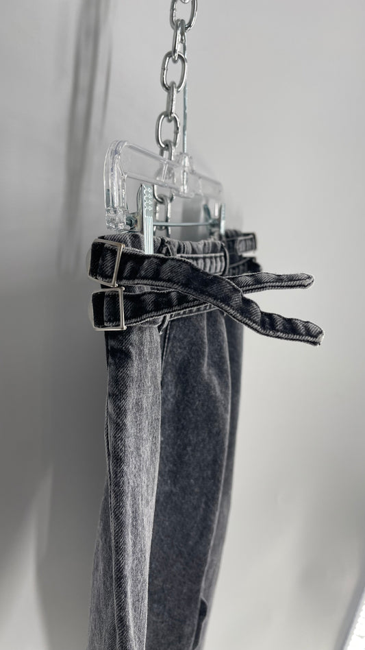 PRPS Charcoal Acid Wash High Waisted Jeans with Pleats and Adjustable Pulls (31)