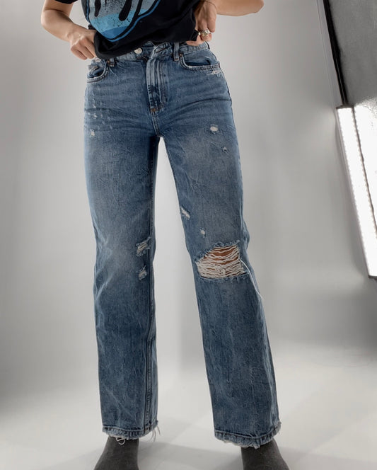 Free People Distressed Black/Grey Jeans with Tags Attached (28)