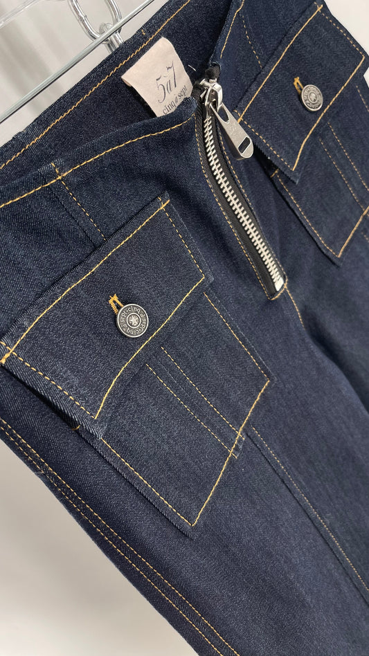 Cinq a Sept Azure Dark Wash Denim, Zip Front, Pocketed Cropped Wide Legs (2)