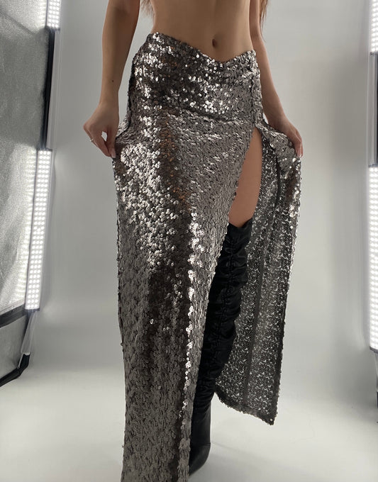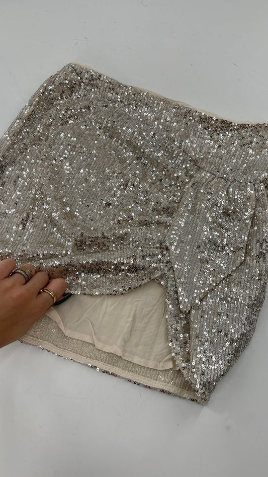 Blu Moon Free People Silver Sequin Skirt (Medium)