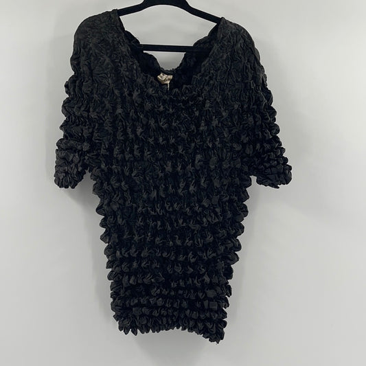 Anthropologie- Robust - Cream Short Sleeve Top With Organza Detail on Neckline (Size S)