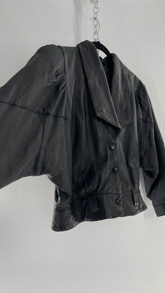 Vintage Black Leather Cropped Motorcycle Jacket (Medium)
