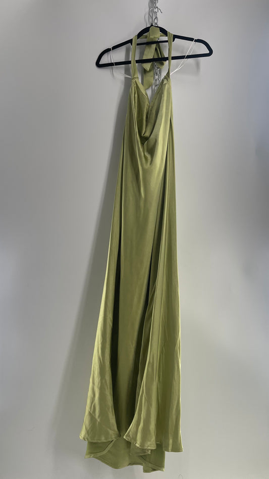 Princess Polly Green Silky Shiny Full Length Gown with Tags Attached (12)