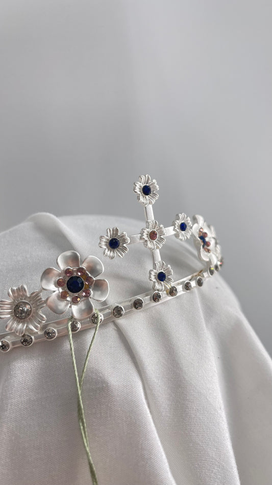 Free People Chrome Metal Silver Renaissance Tiara with Gemstones