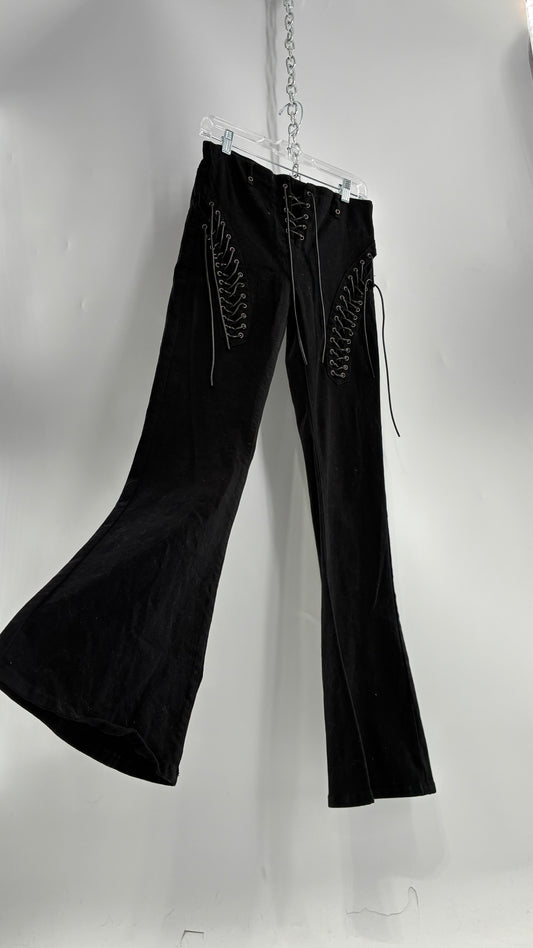 Edikted Black Denim Flares with Open Side Tie Up Details (Medium)