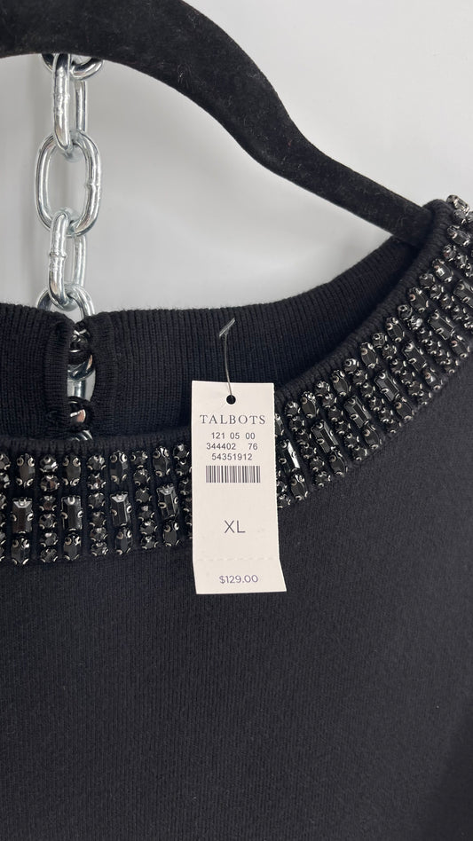 TALBOTS Black Cotton/Modal Sweater with Rhinestone Neckline and Tags Attached (XL)