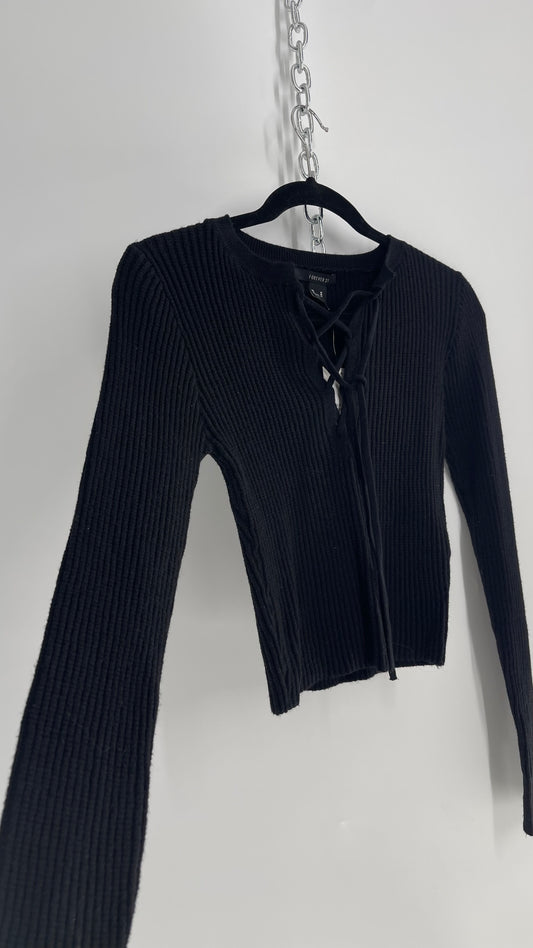 Forever 21 Black Ribbed Knit Long Sleeve (Medium)