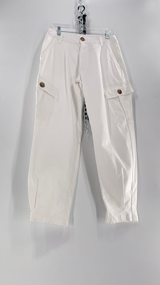 Pilcro Anthropologie Off-White Side Button Up with Front Zipper (Size 30)