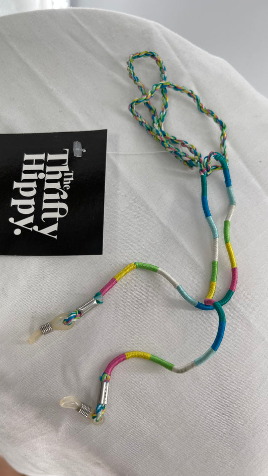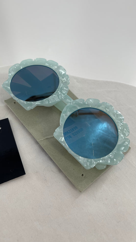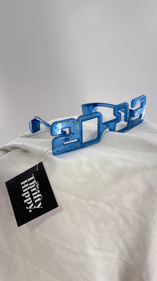 Navy Blue Rectangle Sunglasses with Gold Chain