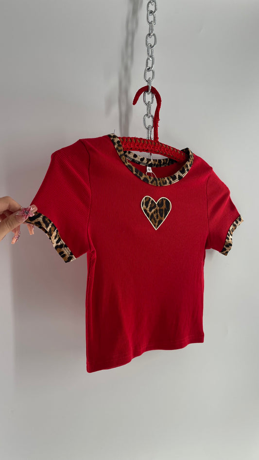 Red Baby T with Cheetah Heart and Piping (Medium)