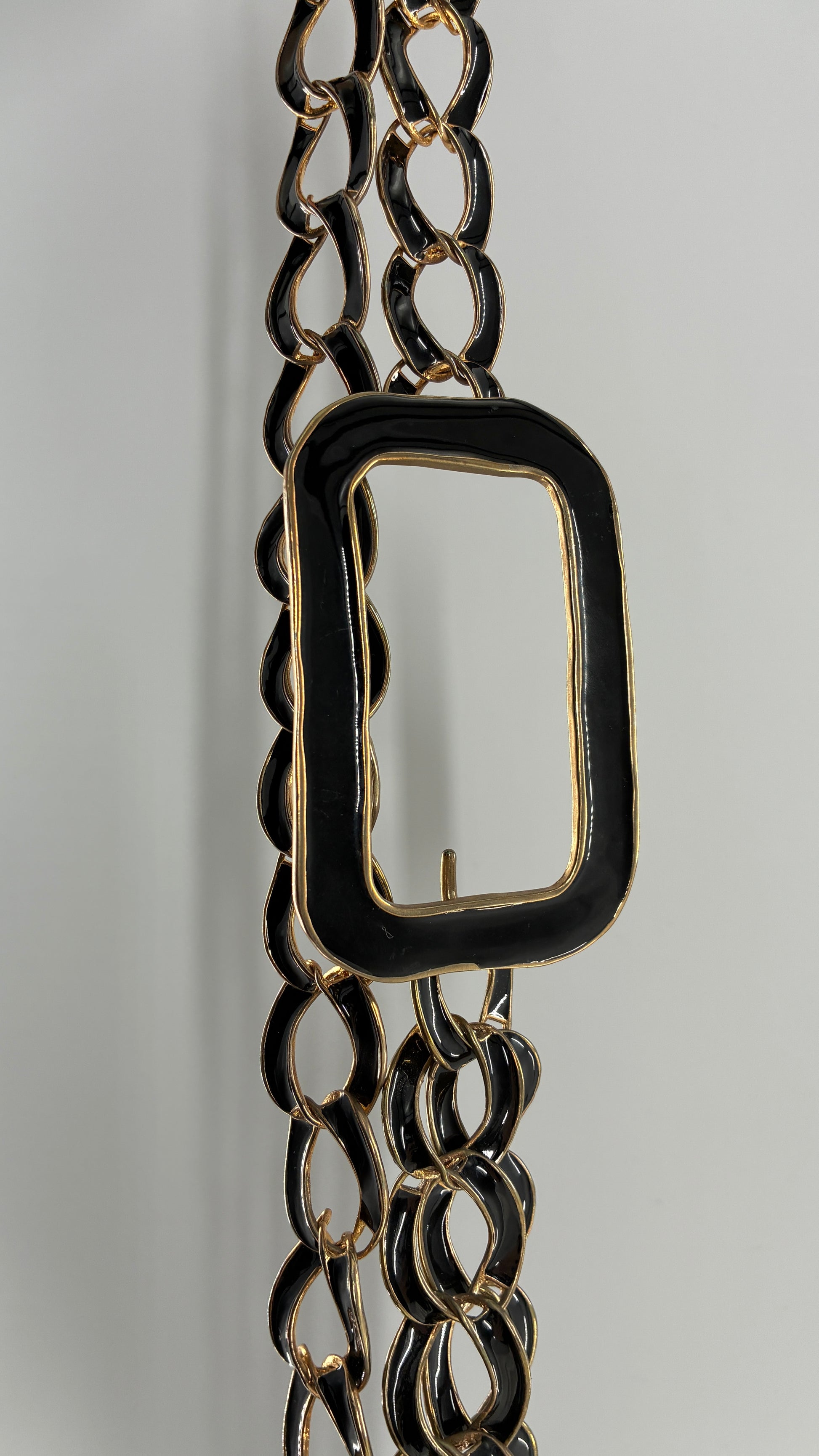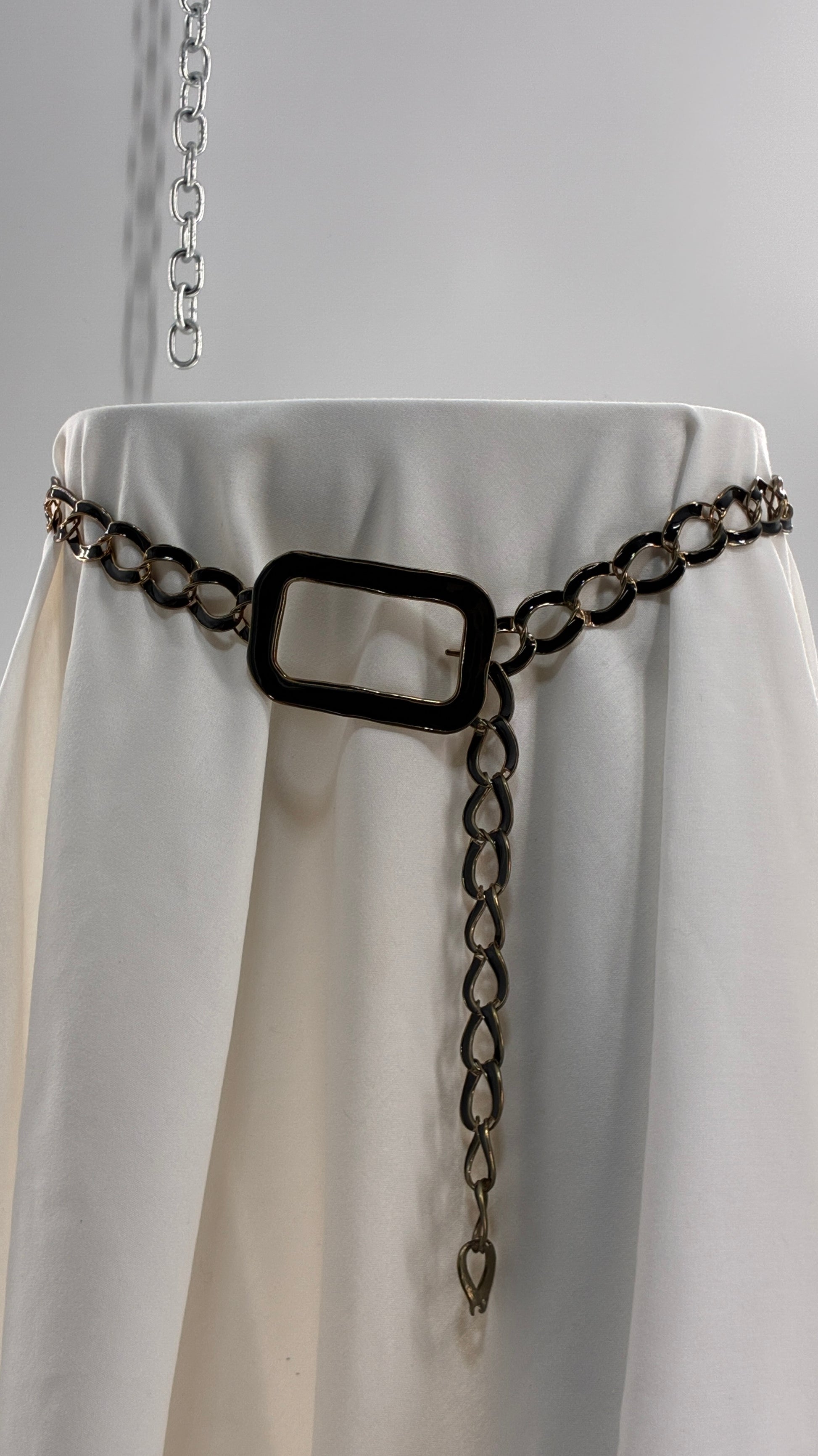 Vintage Gold and Black Chain Belt with Oversized Statement Buckle (One Size)