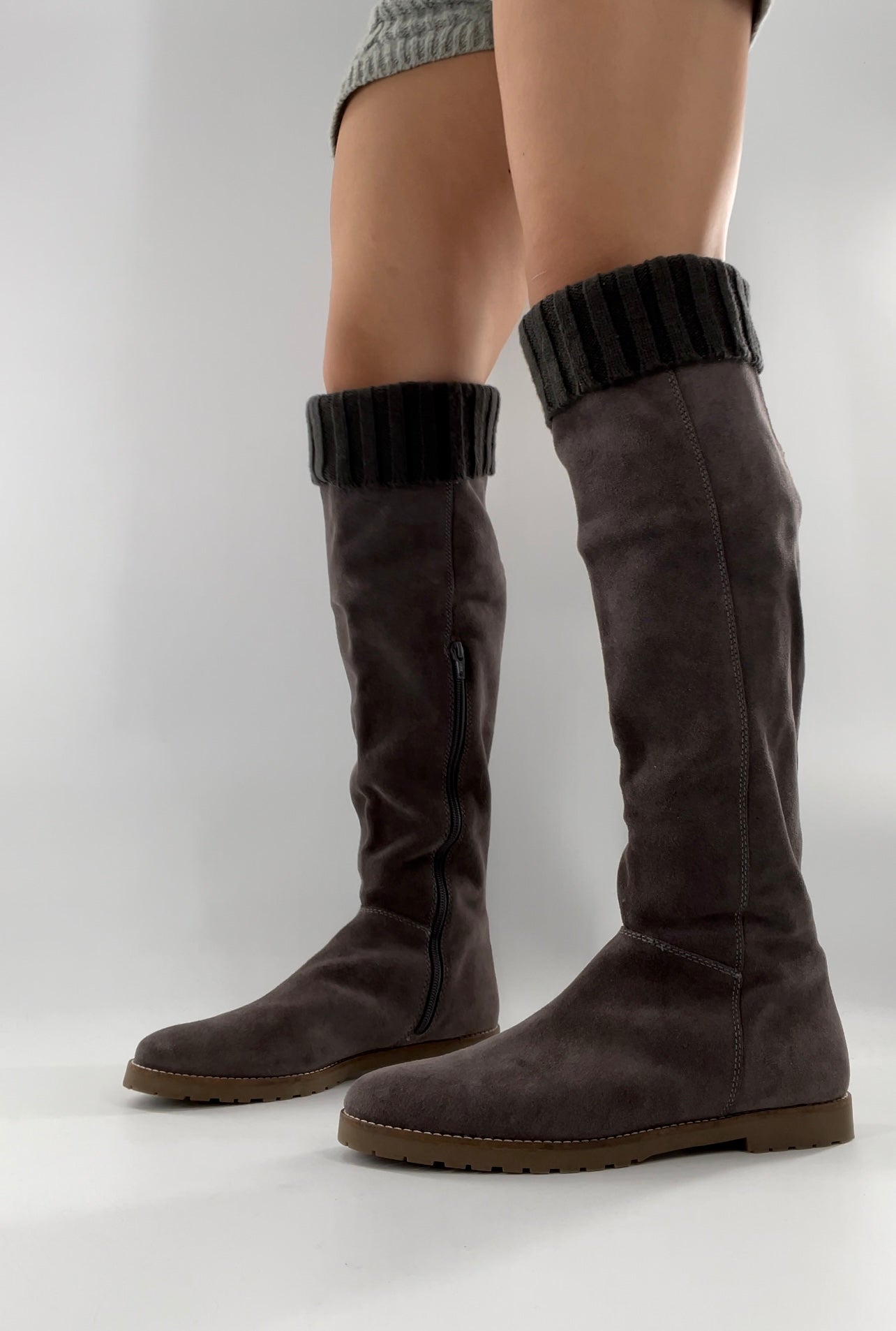 CORSO COMO Suede Knee High Boots Grey with Built in Leg Warmer (10)