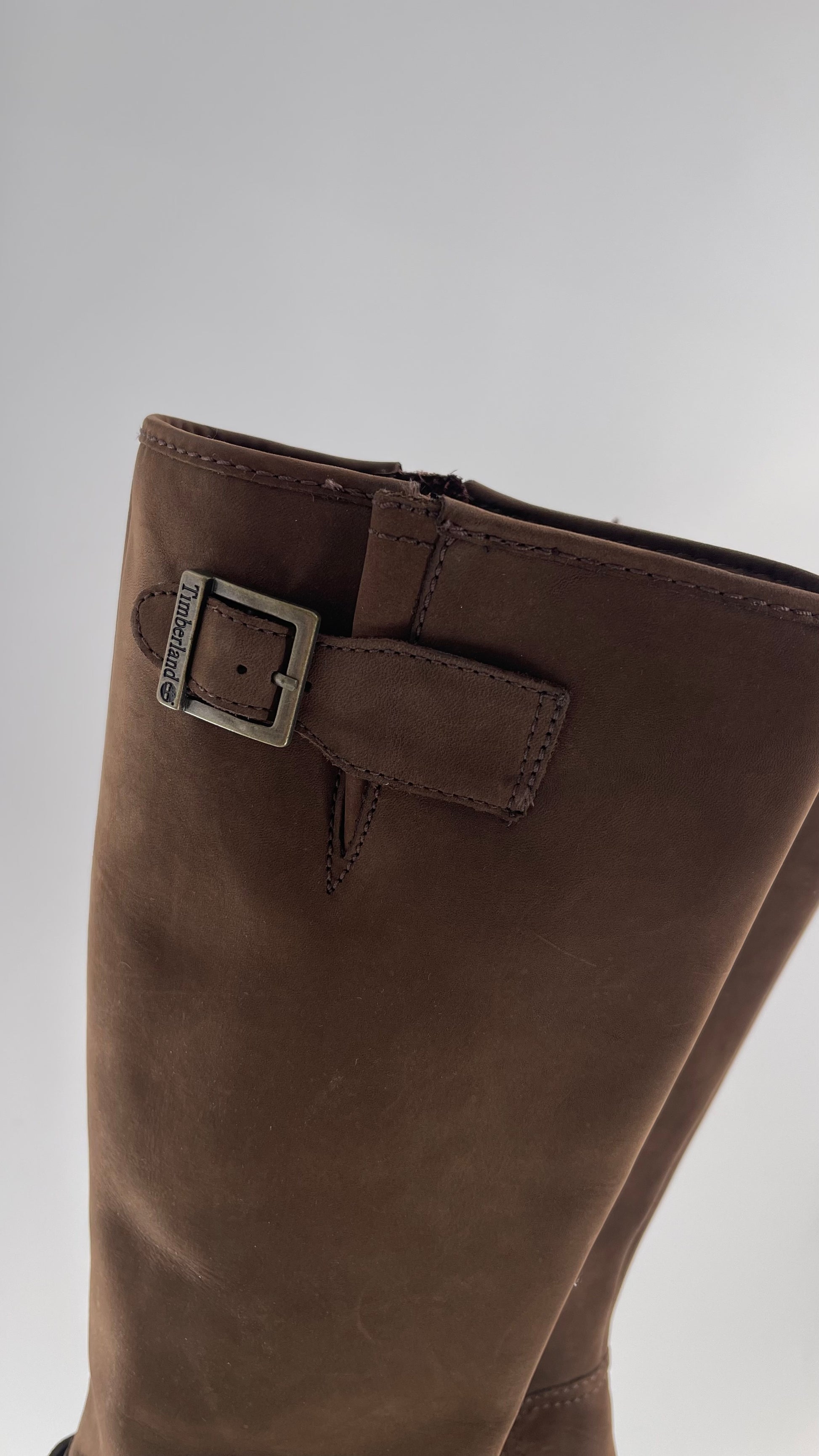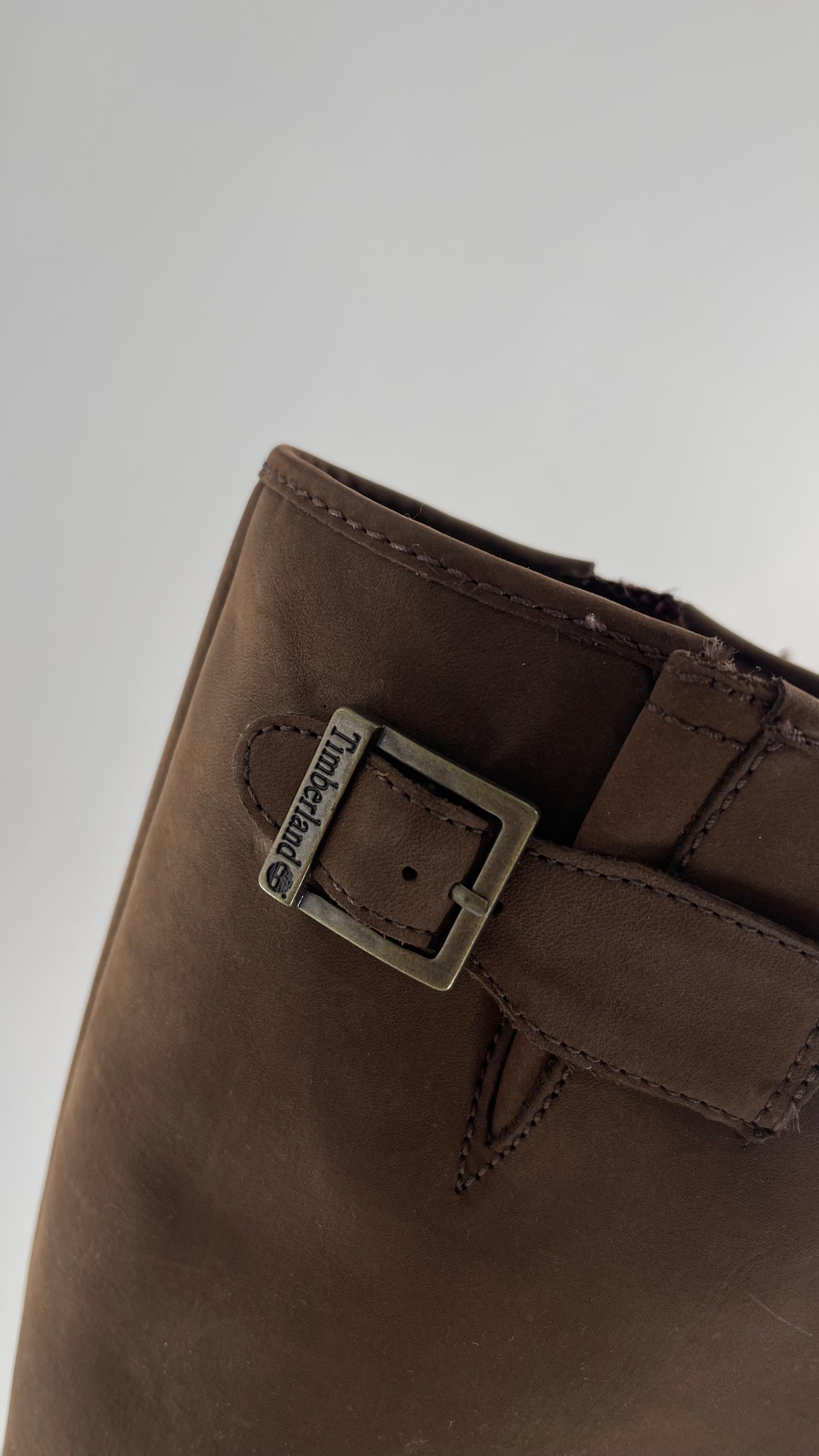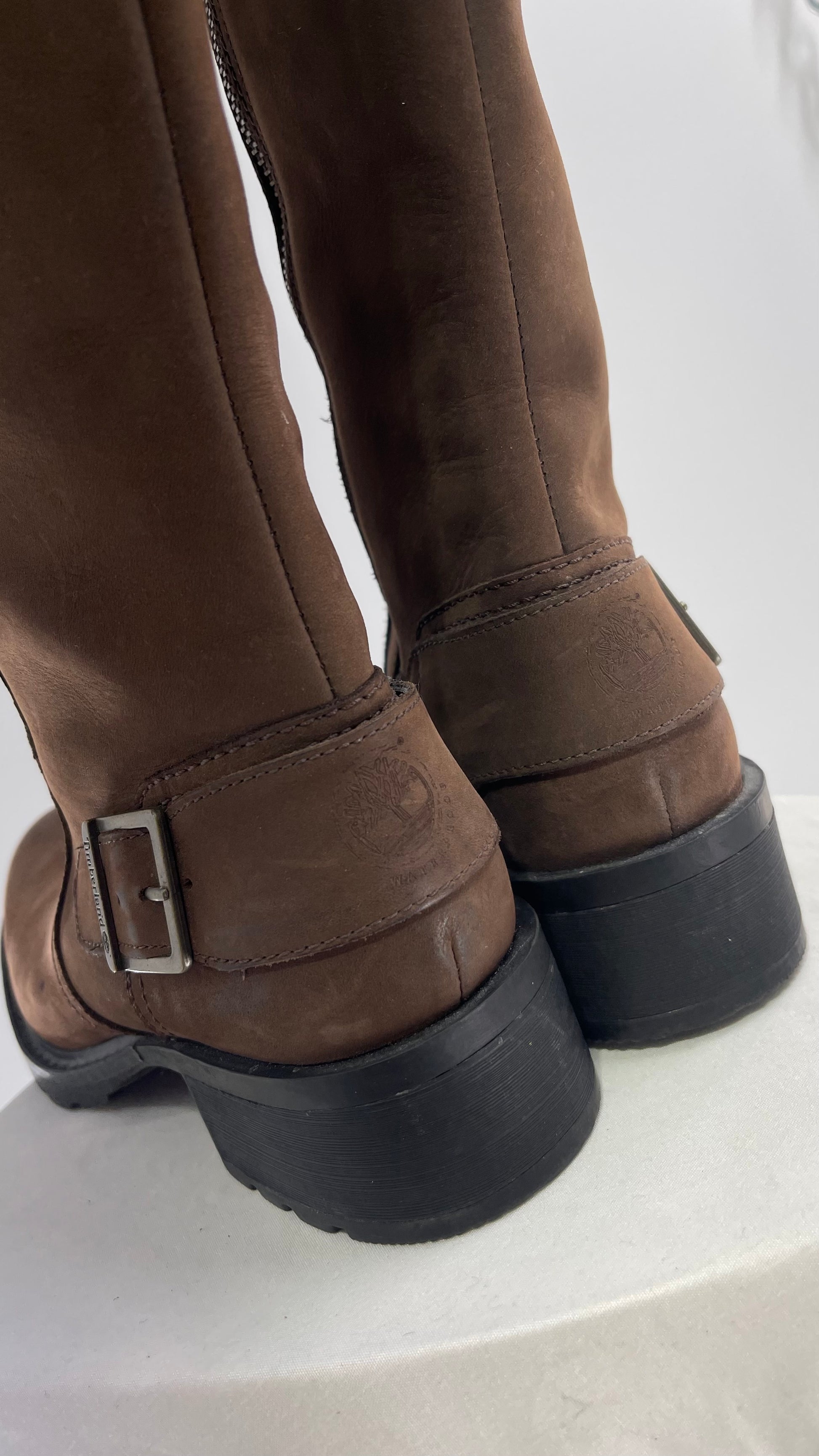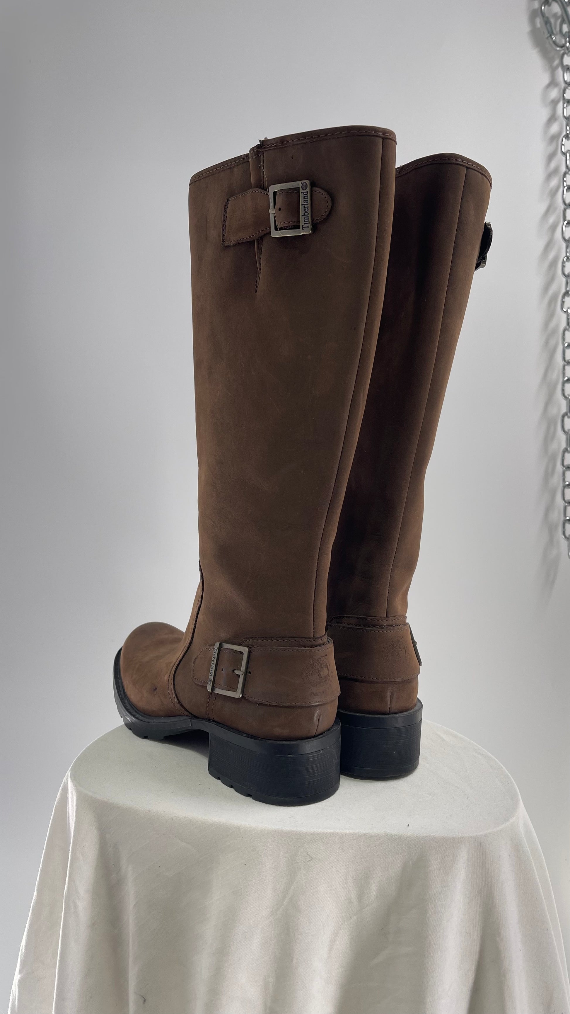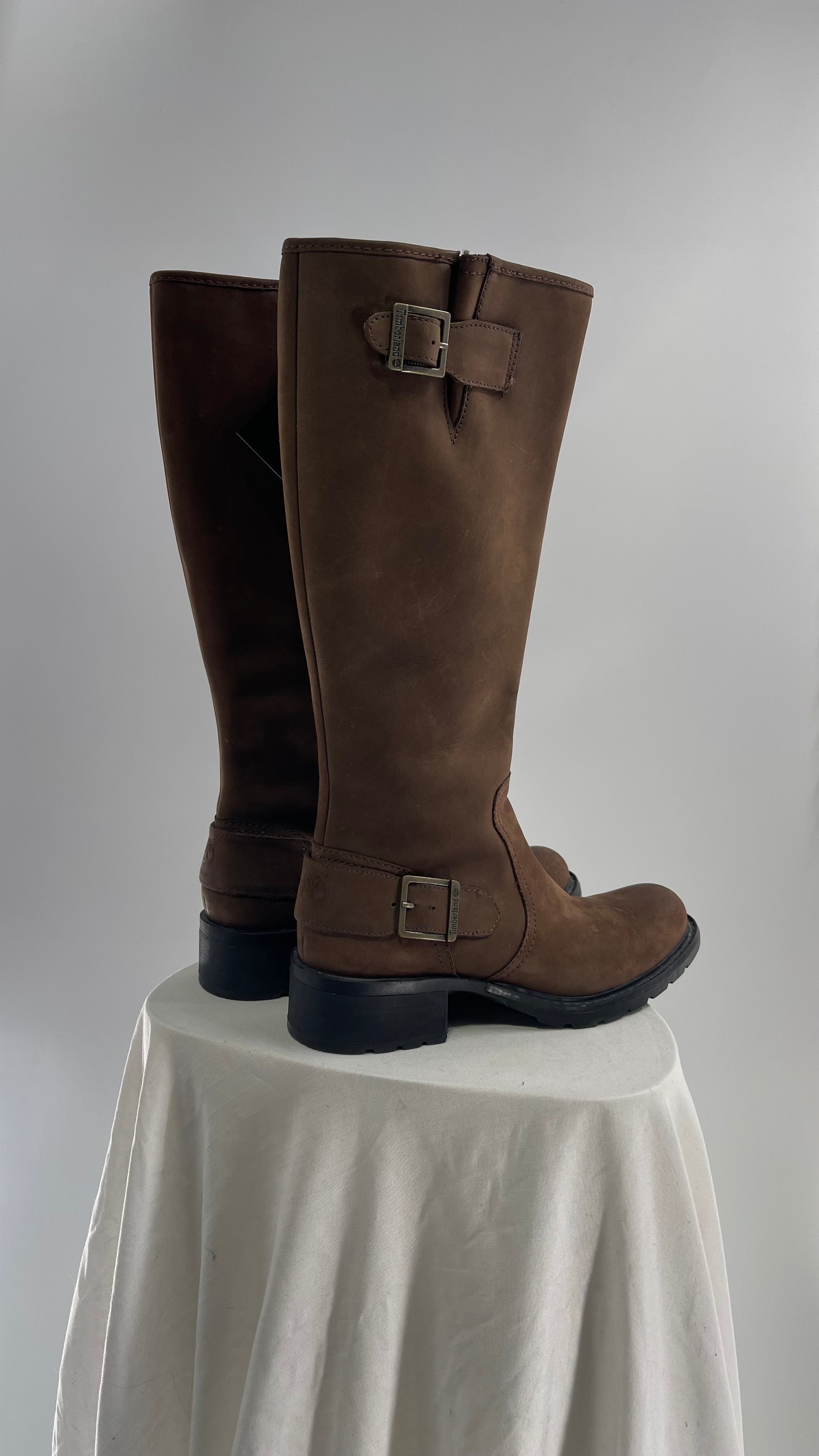 Timberland Genuine Leather Brown Knee High Buckle Side Motorcycle Boots (8)