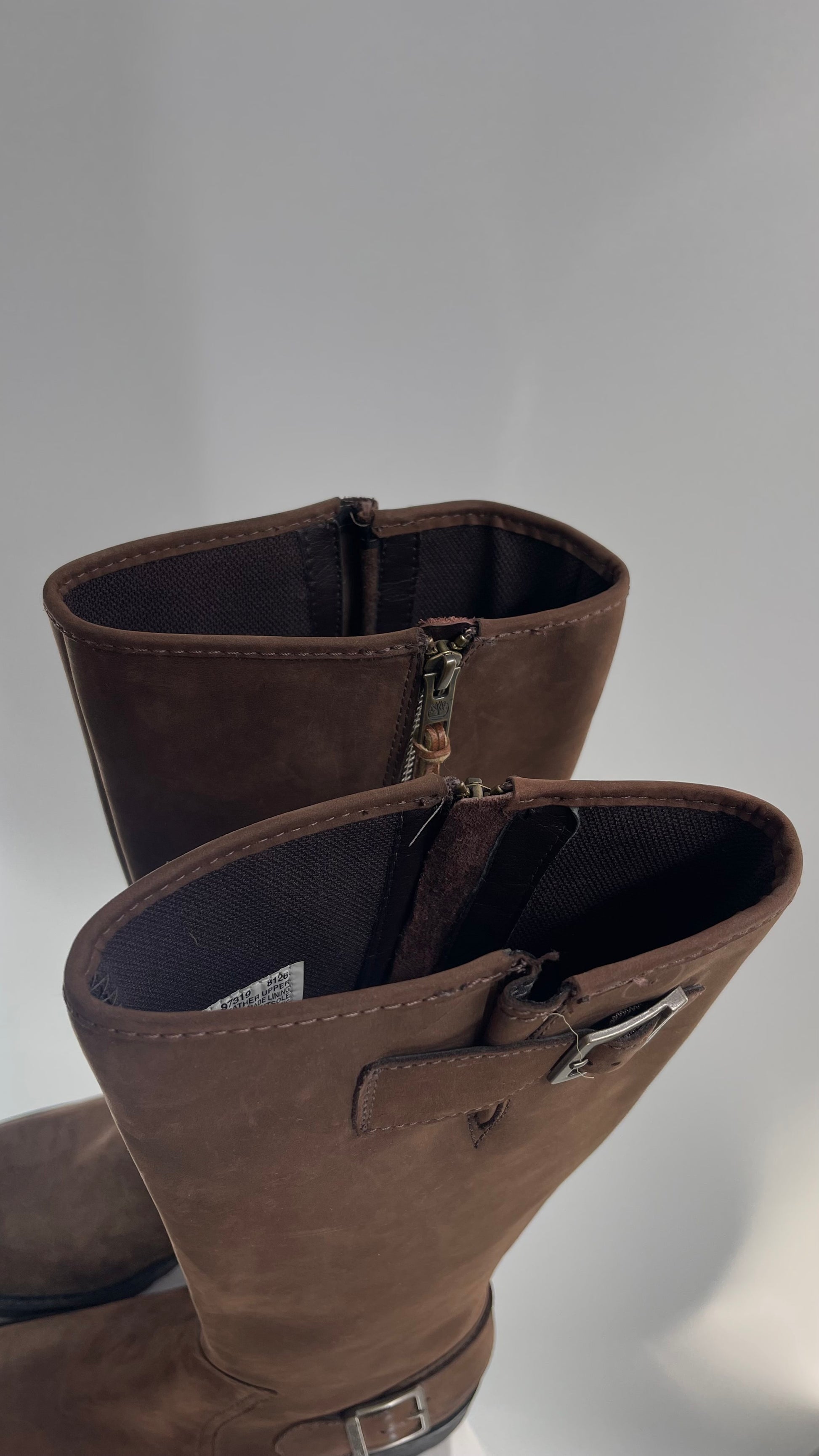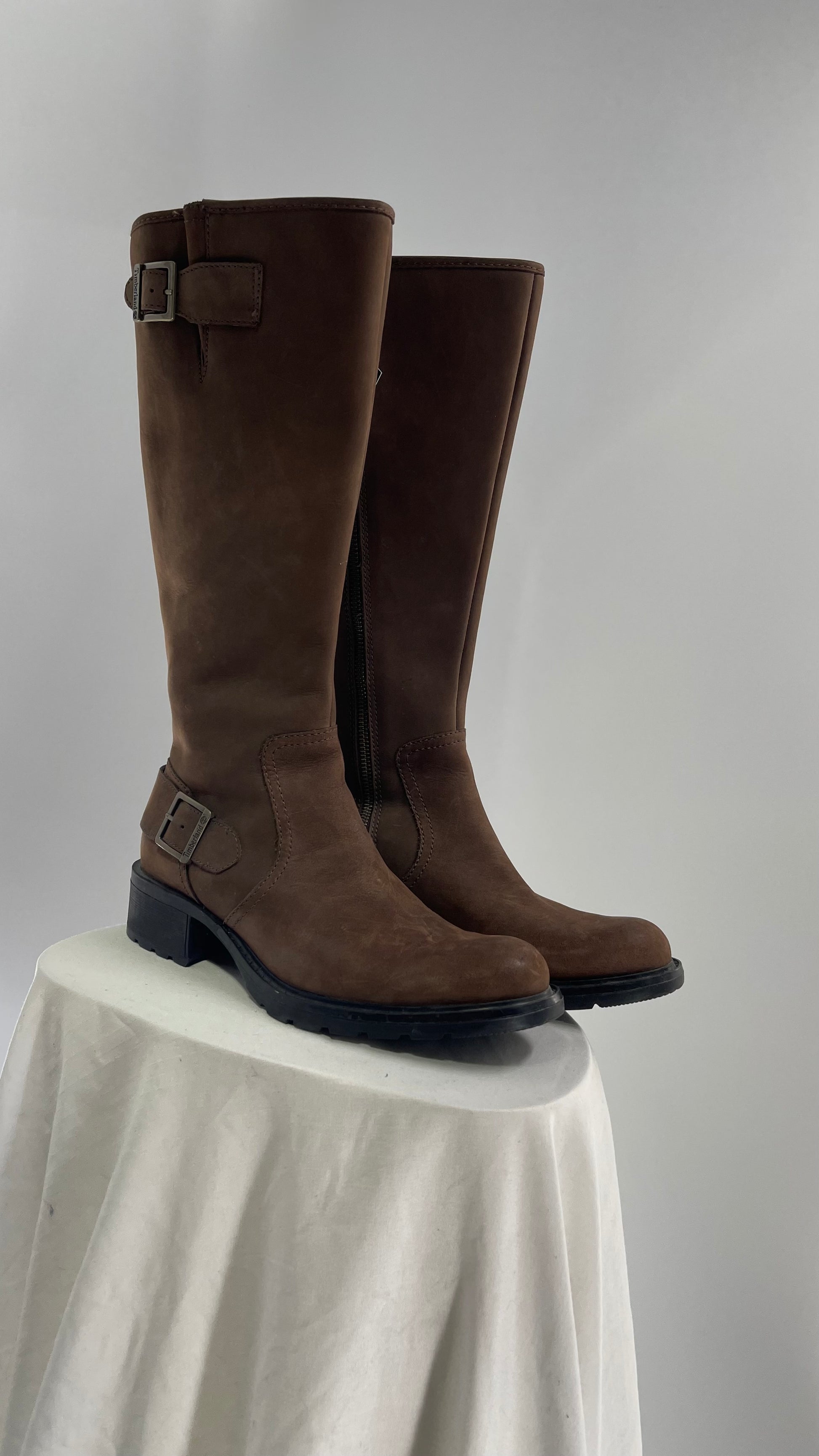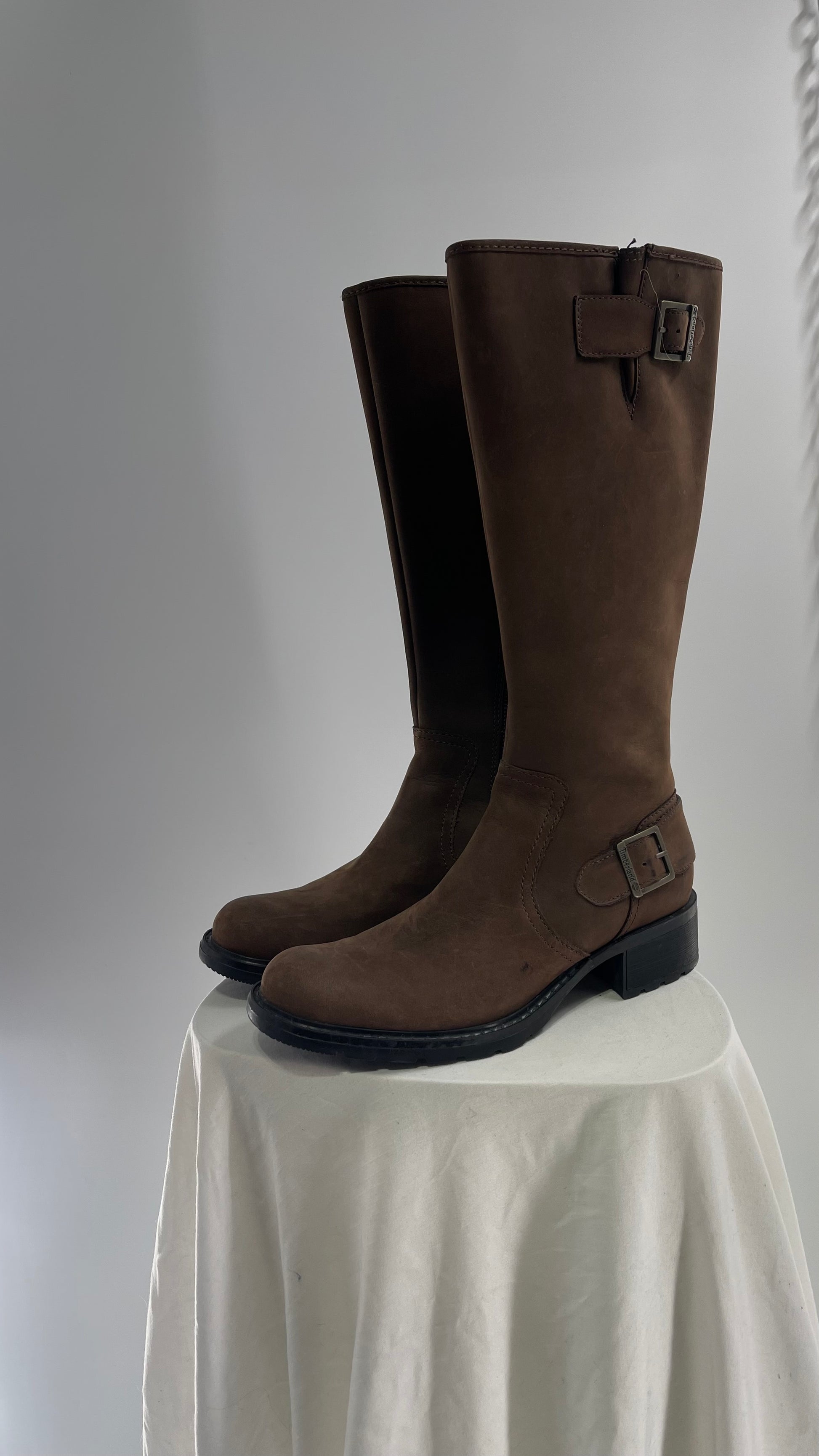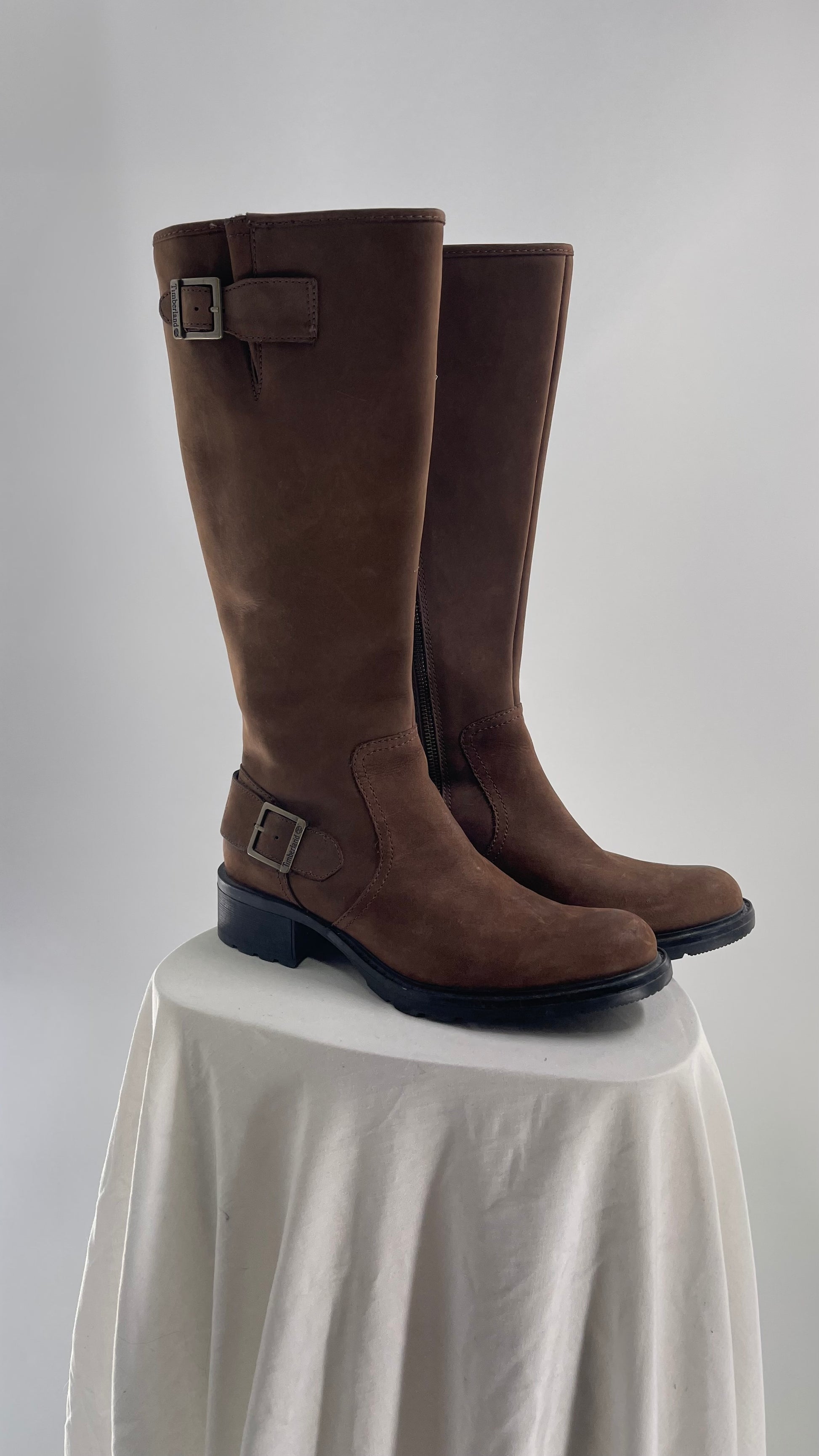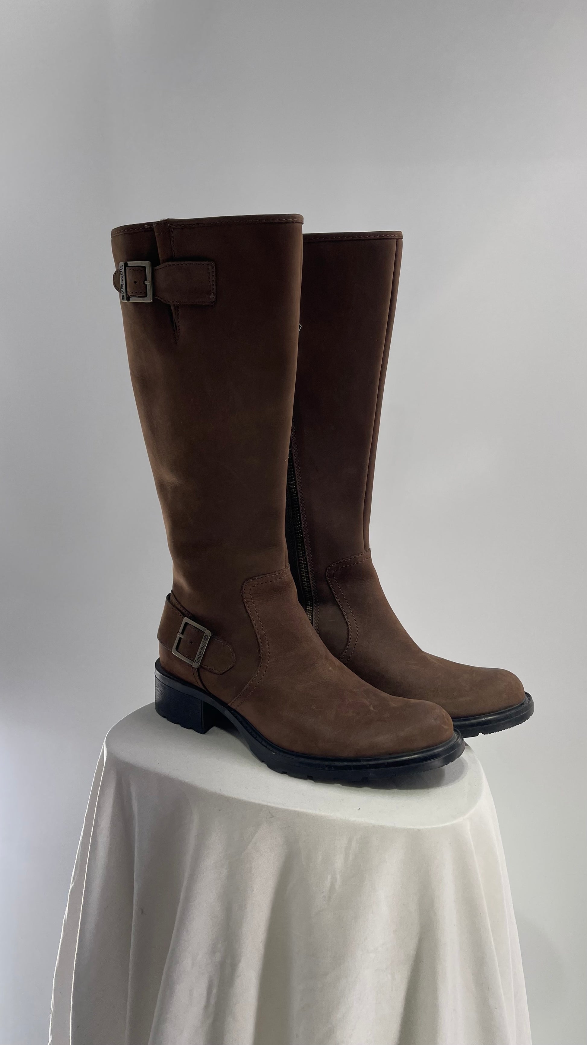 Timberland Genuine Leather Brown Knee High Buckle Side Motorcycle Boots (8)