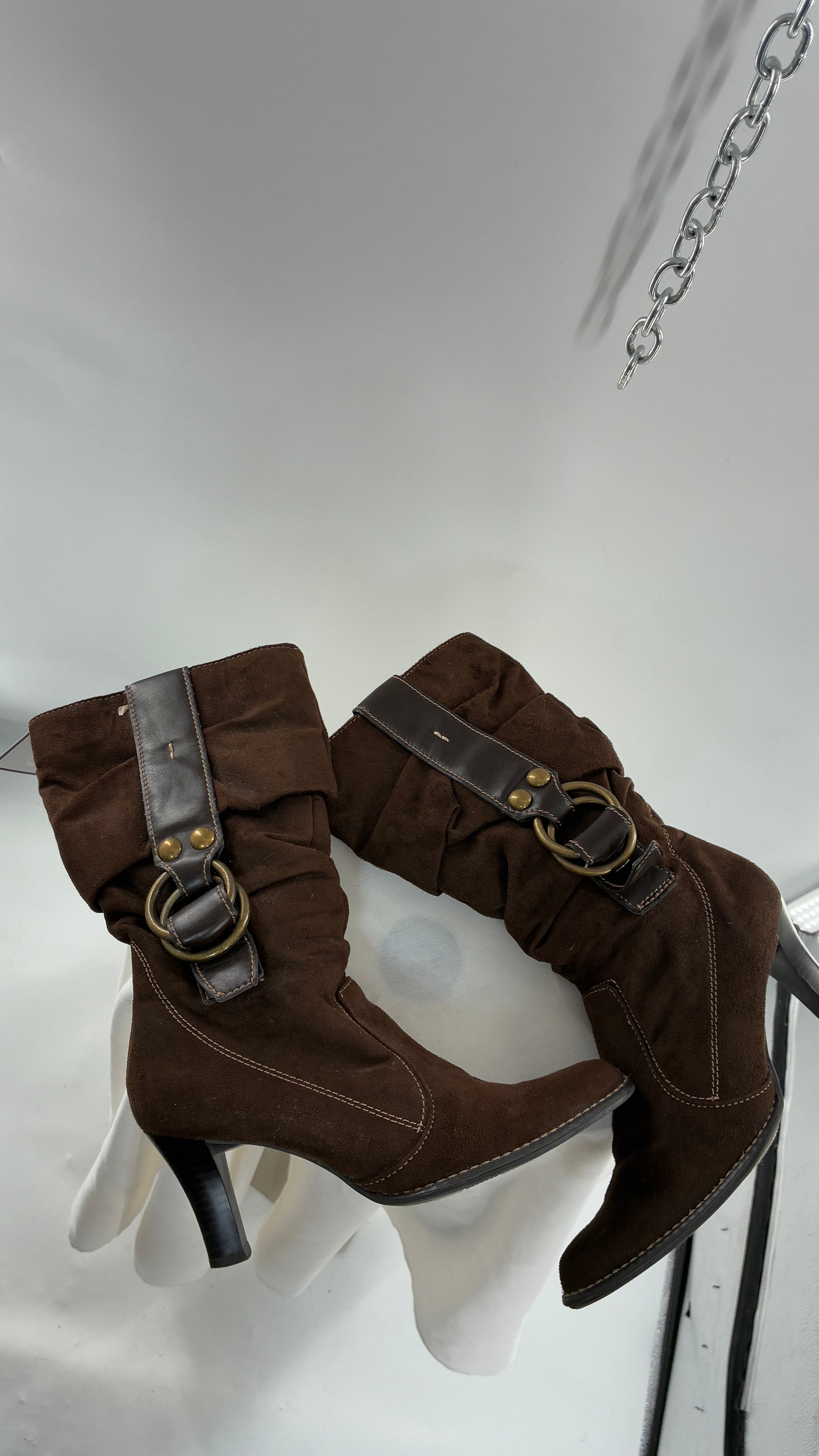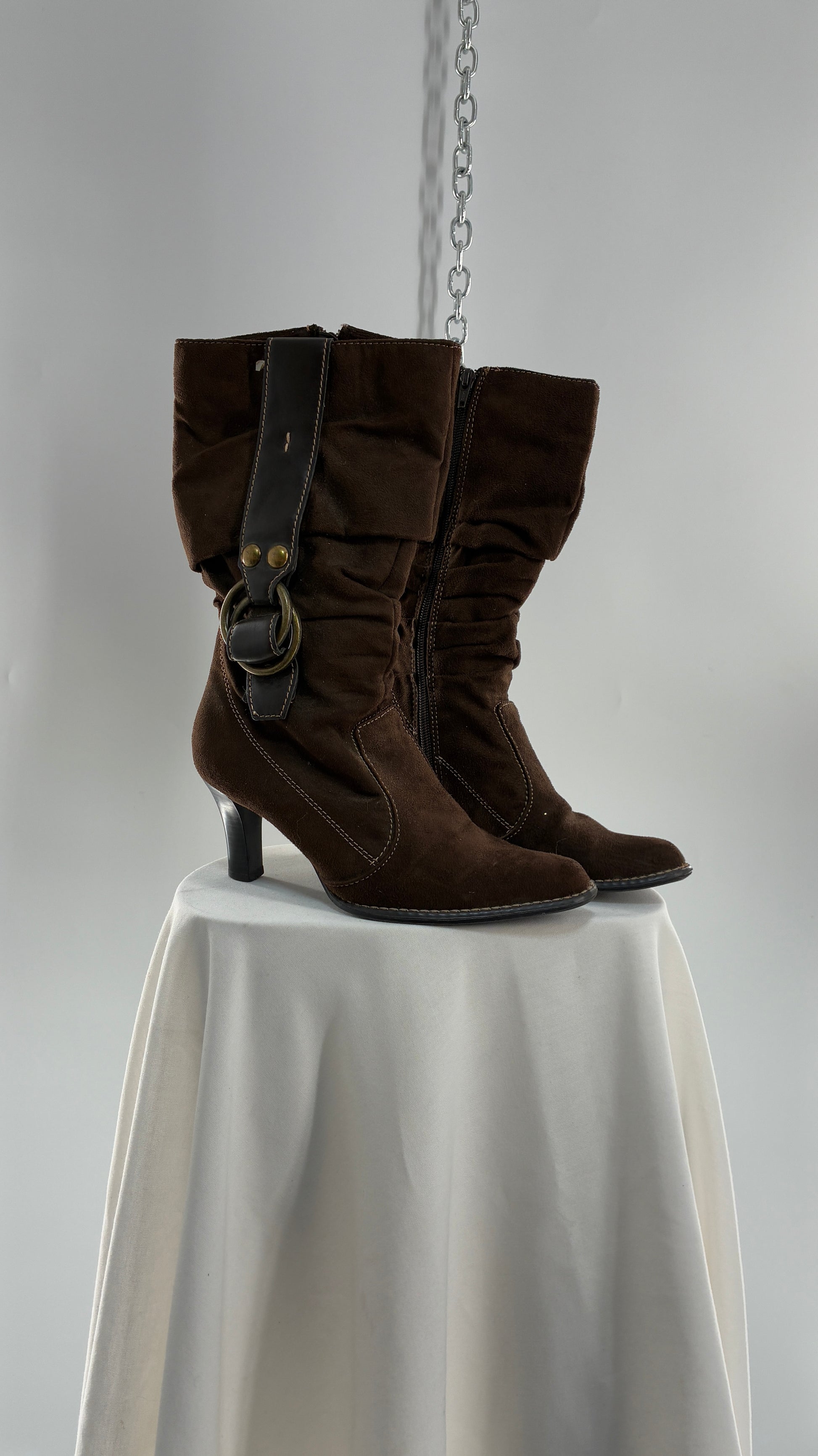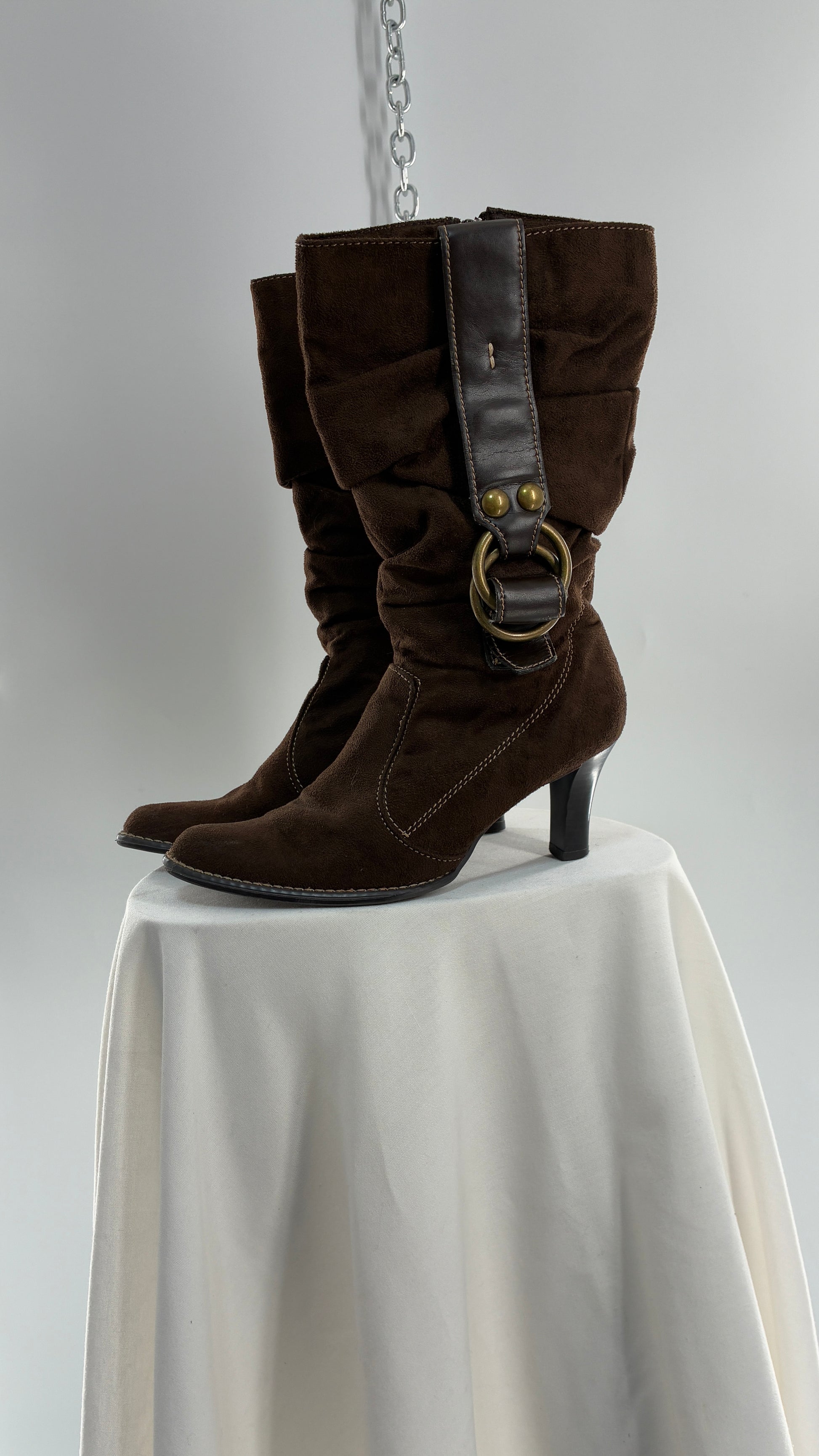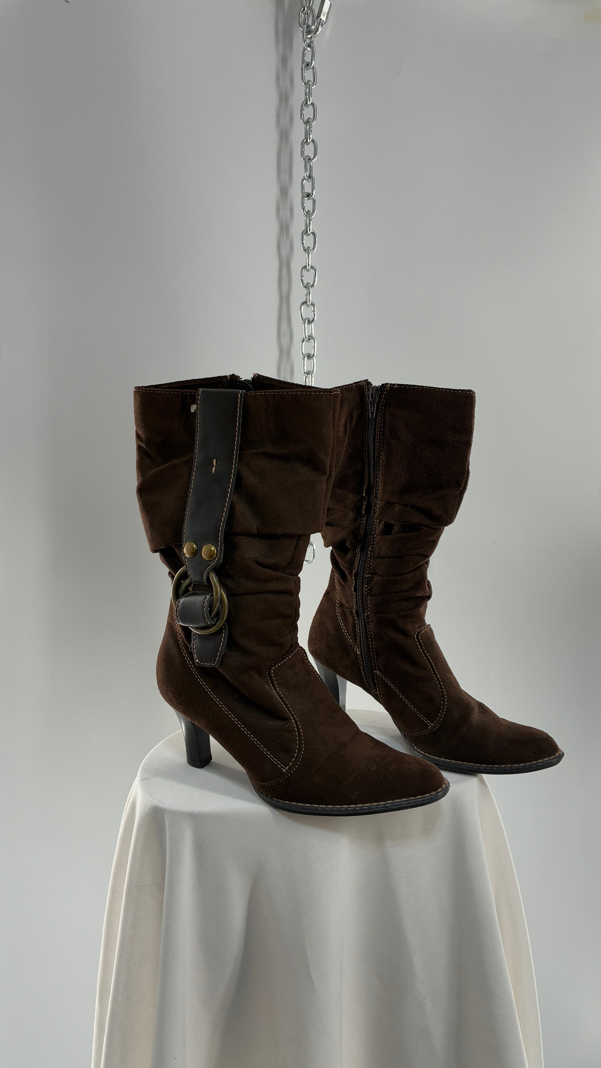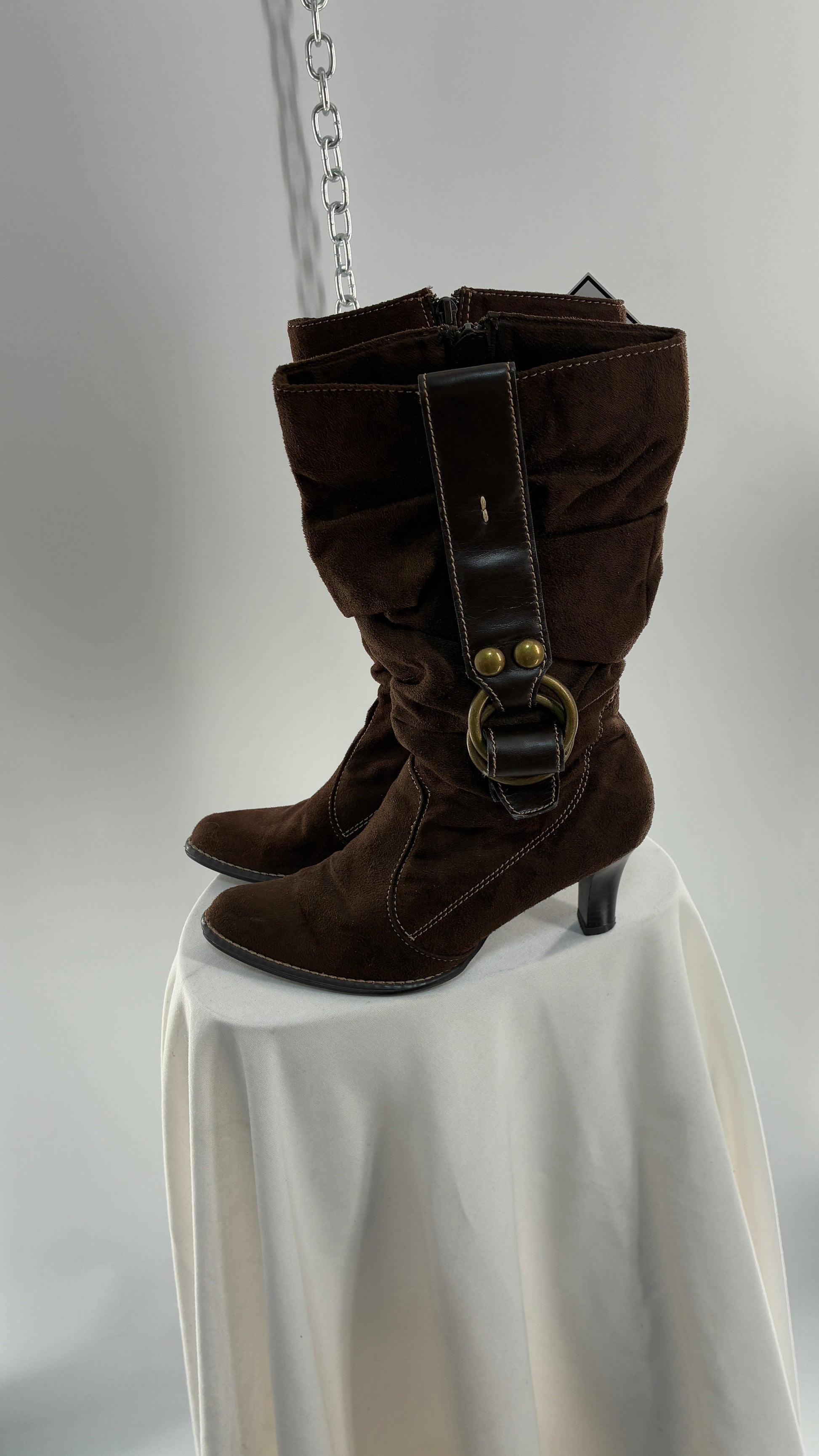 Vintage PREDICTIONS Vegan Suede Brown Stacked Boots with Buckle Detail